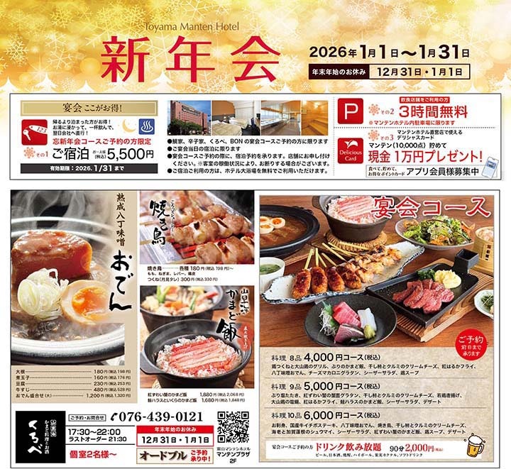 2025.04.14 くろべ メニュートピックス テイクアウトメニュー・オードブルの御注文を承り中! テイクアウトメニューの注文はお渡し日当日でもOK! お渡しの1時間前までにお願いします。 オードブルメニューはお渡し日の前日までご注文をお願いいたします。 電話注文がおすすめです。商品のお渡しは16:00~20:00まで。 ※写真の料理内容は季節により替わる場合がございます。 前の記事へ 次の記事へ 一覧へ戻る