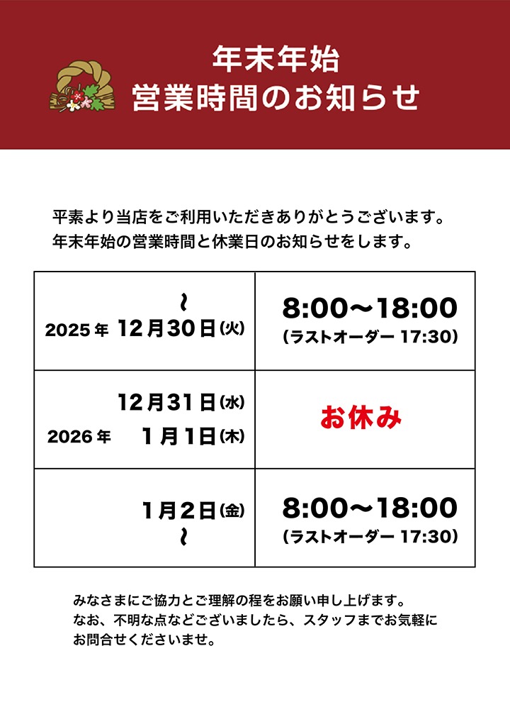 8:00〜18:00(L.O.17:30)