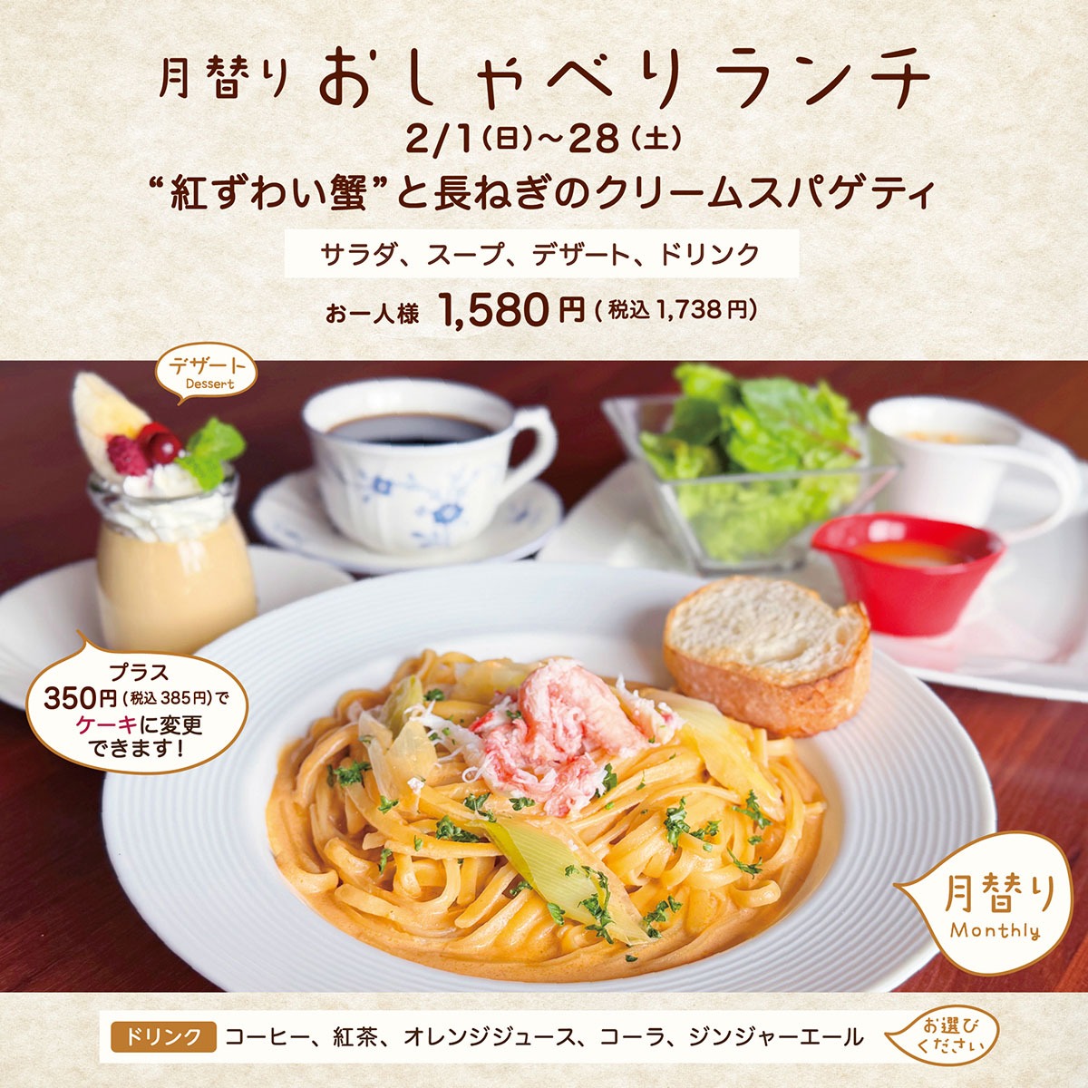 おしゃべりランチ、お楽しみランチご注文の方、デザートをケーキに変更できます‼️
